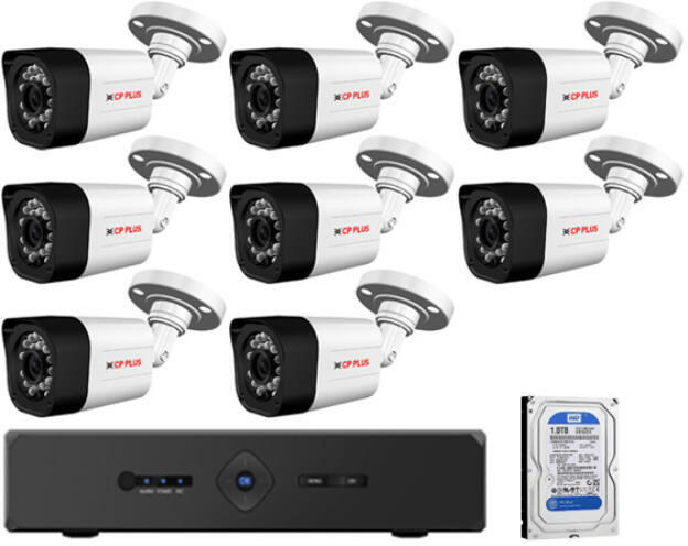 8 db CP PLUS CP-USC-TA24L2-0360 (HQIS Pro CCD, színes, HDCVI, 2,4MP, 3.6 mm, 1080p, IP66, 12VDC). 1 db CP PLUS CP-UVR-0801L1-4KH (8 video/1 audio, HDCVI/AHD/HDTVI/CVBS/IP, 8MP, 1 SATA, 2 USB, 12VDC). 1 db Western Digital 1000GB S-ATA III BLUE winchester (32MB puffer, 7200rpm, S-ATA3, 6Gb/s).