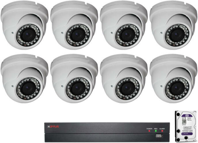 8 db CP PLUS CP-VCG-SD10FL4 (1/4"CMOS, AHD/HDTVI/HDCVI/Analog, 1MP, 2.8-12 mm, 720p, IR LED, 12VDC). 1 db CP PLUS CP-UVR-0801L1-4KH (8 video/1 audio, HDCVI/AHD/HDTVI/CVBS/IP, 8MP, 1 SATA, 2 USB, 12VDC). 1 db Western Digital 1000GB S-ATA III BLUE WD10EZEX (1000GB, 64MB cache, 7200rpm, S-ATA3, 6Gb/s).