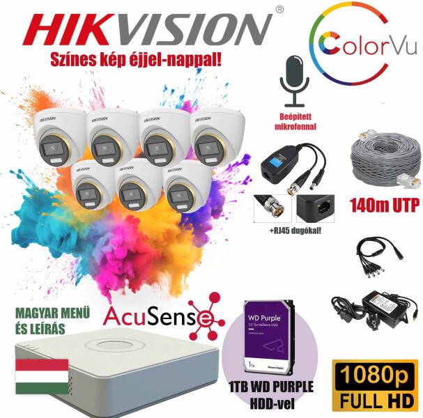 Hikvision 2MP ColorVU 7 Kamerás Szereld Magad TurboHD Csomag RJ45 balunnal