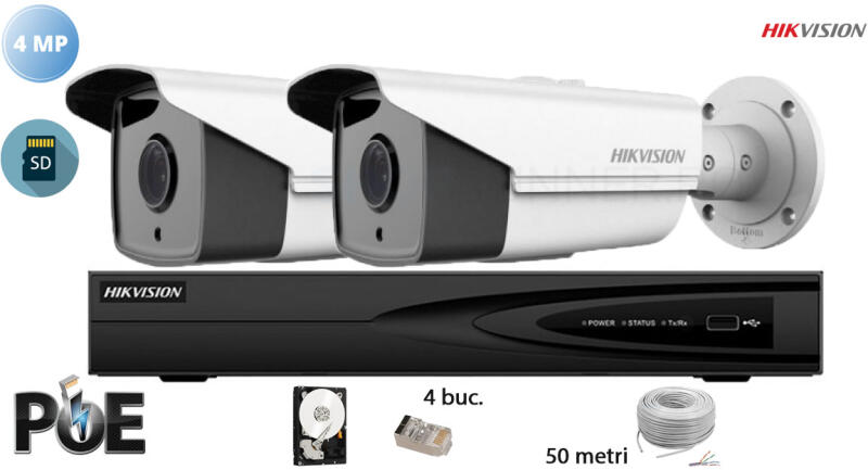 Hikvision komplett analóg kamera rendszer 2 kültéri IP kamera, 4MP(2K), SD-kártya, IR 80m