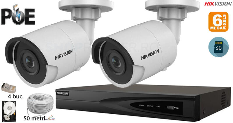 Hikvision komplett analóg kamera rendszer 2 kültéri IP kamera, 6MP(3K), SD-kártya, IR 30m (KIT2CH6730C)