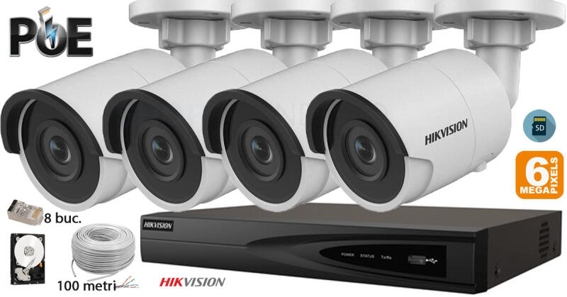 Komplett Hikvision felügyeleti készlet 4 IP kamera, 6MP(3K), SD-kártya, IR 30m A videó megfigyelő készlet egy komplett rendszer, amely tartalmazza a videó megfigyeléshez szükséges összes komponenst, amelyet a vezető Hikvision gyártó kínál a legmagasabb szintű termékekben. minőségi szabványok, amelyek tiszteletben tartják a hatályos európai normákat. Ez a rendszer általában minden felhasználónak készült, nem csak a telepítőknek, tekintettel a telepítési folyamat alacsony nehézségi fokára. A telepítési technika megkönnyítése érdekében a jelet és a teljesítményt egyidejűleg továbbító UTP-kábel már préselve (bedugva). A videó megfigyelő készlet sok helyzetben hasznosnak bizonyul: A csomag tartalma: 1 x HIKVISION IP NVR 4 videocsatorna 8MP(4K) DS-7604NI-K1-4P(B) 4 x Hikvision IP kamera 6MP(3K), SD-kártya DS-2CD2063G0-I IR 30M 1 x HDD 1 TB 1 x 100 m UTP kábel 8 x RJ45 csatlakozó Jack IP NVR HIKVISION Ultra HD 8MP(4K) DS-7604NI-K1-4P(B) Ez a HIKVISION NVR egy video modern IP hálózat felvevő képes monitor, rekord ?is? 4 IP megfigyelő kamera képét játssza le megapixeles felbontással, akár 8 MP-en. Ez a modell tartalmaz 4 portos PoE kapcsolót a közvetlen csatlakozáshoz? a szobák közül. Független HDMI kimenet? (4K felbontásig) és VGA (1080p felbontásig) különböző képernyőmérettel jeleníthet meg képeket. Mindegyik monitor képes bármilyen kameráról származó videót megjeleníteni? a rendszerből, bármely képernyőfelosztásban. A SATA port lehetővé teszi a felhasználó számára maximum kapacitású merevlemezt telepíteni? 6 TB-ig. IP KAMERA HIKVISION 6MP(3K), SD-kártya DS-2CD2063G0-I-2.8mm, IR 30M A HIKVISION kamera 6MP(3K) felbontású intelligens infravörös sugárzással éjjel 30m-ig, fix 2.8mm-es objektívvel, ami biztosítja a 120 fokos látószöggel, kiváló minőségű képeket továbbít valós időben közvetlenül az NVR-re. A kamera időjárásálló, IP67 védelmi fokozattal rendelkezik. Merevlemez 1 TB Merevlemez 1 TB, nagy sebességű SATA III interfésszel érkezik, 7200 RPM (3 Gb/s), amelyet úgy terveztek, hogy nagy teljesítményt és rendkívül csendes működést biztosítson nagyon alacsony hőmérsékleten. 100m x UTP kábel (jel+táp) 8 x RJ45 csatlakozó