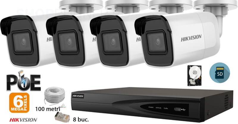 Hikvision komplett analóg kamera rendszer 4 kültéri IP kamera, 6MP(3K), SD-kártya, IR 30m (KIT4CH6630C)
