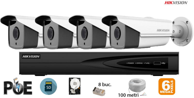 Hikvision komplett analóg kamera rendszer 4 kültéri IP kamera, 6MP(3K), SD-kártya, IR 50m (KIT4CH6550C)