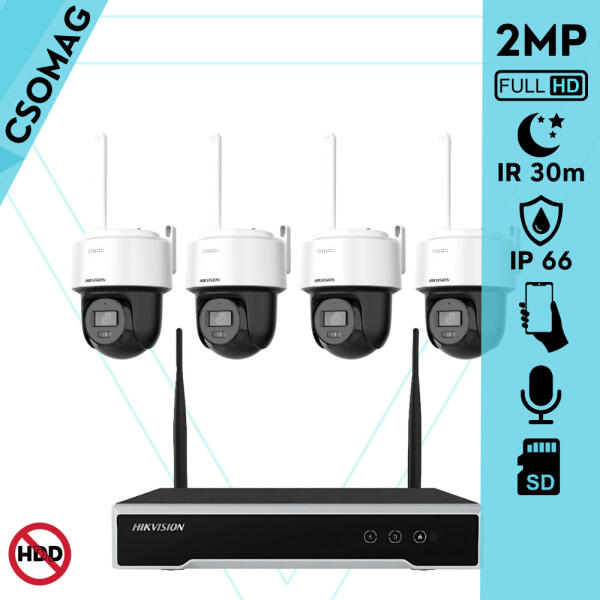 Hikvision 4 dóm kamerás WIFI megfigyelőrendszer 2MP dóm biztonsági kamera, 4.0 mm-es fix objektívvel, beépített WiFi antennával és mikrofonnal, microSD kártyafoglalat, infravörös éjjellátó, IR 30m, kültéri (DS7