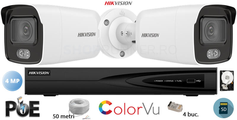 Komplett Hikvision analóg kamera rendszer 2 ColorVU IP kamera 4MP(2K), SD-kártya, IR 30m (KIT2CH7630C)