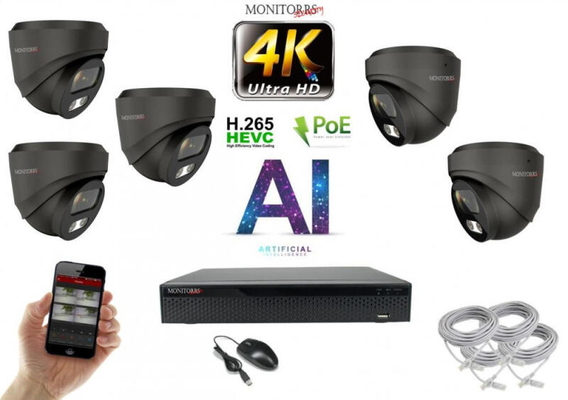 Monitorrs Security - 4K AI IP kamerarendszer 5 kamerával 8 Mpix GD - 6377K5