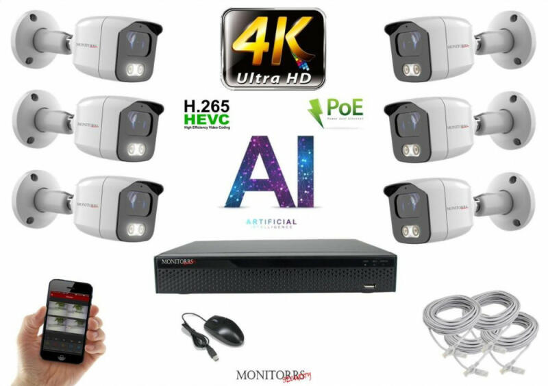 Monitorrs Security - 4K AI IP kamerarendszer 6 kamerával 8 Mpix WT - 6378K6