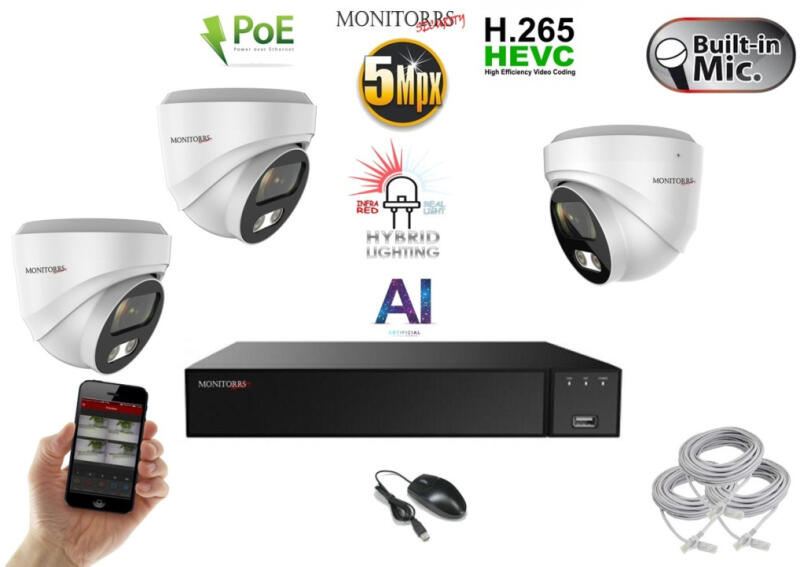 Monitorrs Security - AI Hybrid Light IP kamerarendszer 3 kamerával 5 Mpix WD - 6141k3