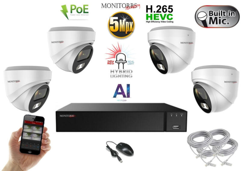 Monitorrs Security - AI Hybrid Light IP kamerarendszer 4 kamerával 5 Mpix WD - 6141k4