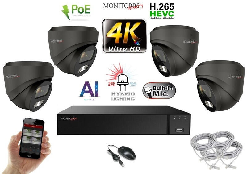Monitorrs Security - AI Hybrid Light IP kamerarendszer 4 kamerával 8 Mpix GD - 6482k4