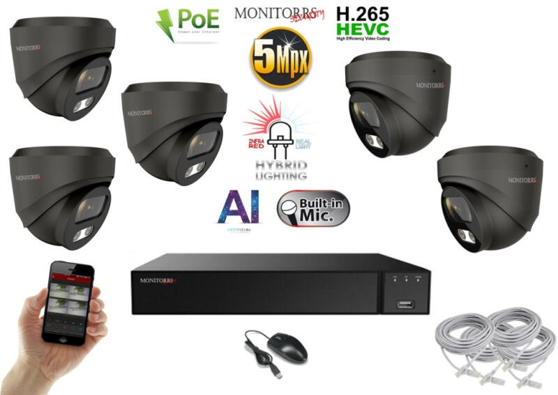 Monitorrs Security - AI Hybrid Light IP kamerarendszer 5 kamerával 5 Mpix GD - 6142k5