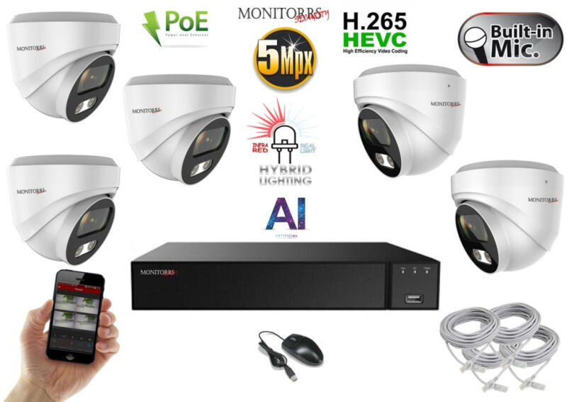 Monitorrs Security - AI Hybrid Light IP kamerarendszer 5 kamerával 5 Mpix WD - 6141k5