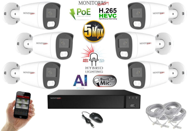 Monitorrs Security - AI Hybrid Light IP kamerarendszer 6 kamerával 5 Mpix WT - 6143k6