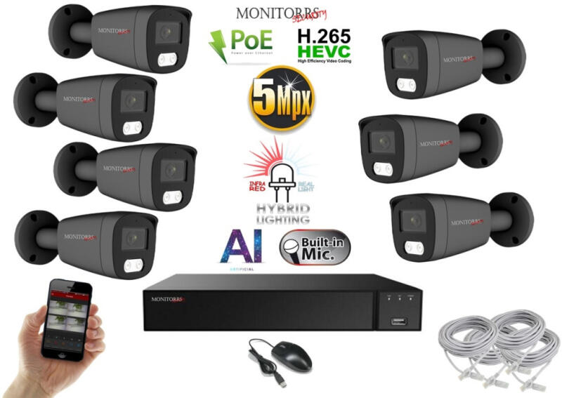 Monitorrs Security - AI Hybrid Light IP kamerarendszer 7 kamerával 5 Mpix GT - 6144k7