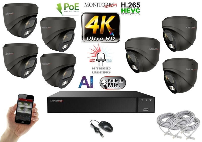 Monitorrs Security - AI Hybrid Light IP kamerarendszer 7 kamerával 8 Mpix GD - 6482k7