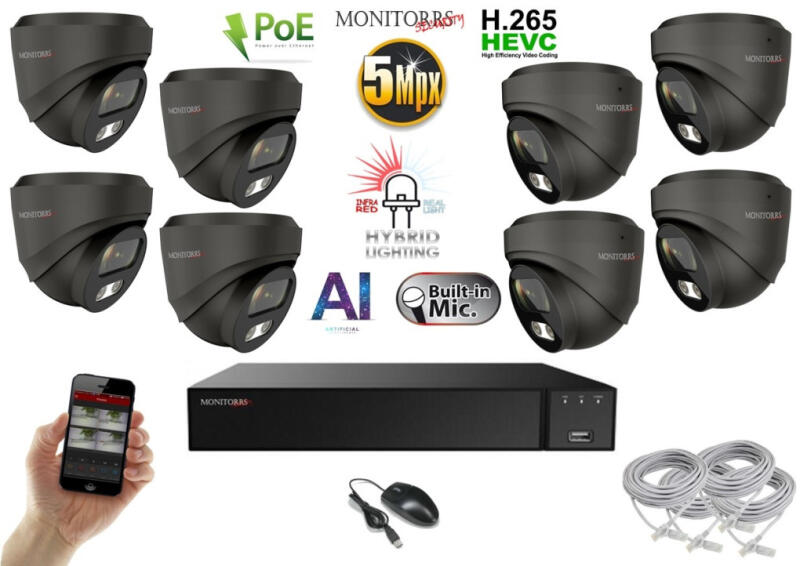 Monitorrs Security - AI Hybrid Light IP kamerarendszer 8 kamerával 5 Mpix GD - 6142k8