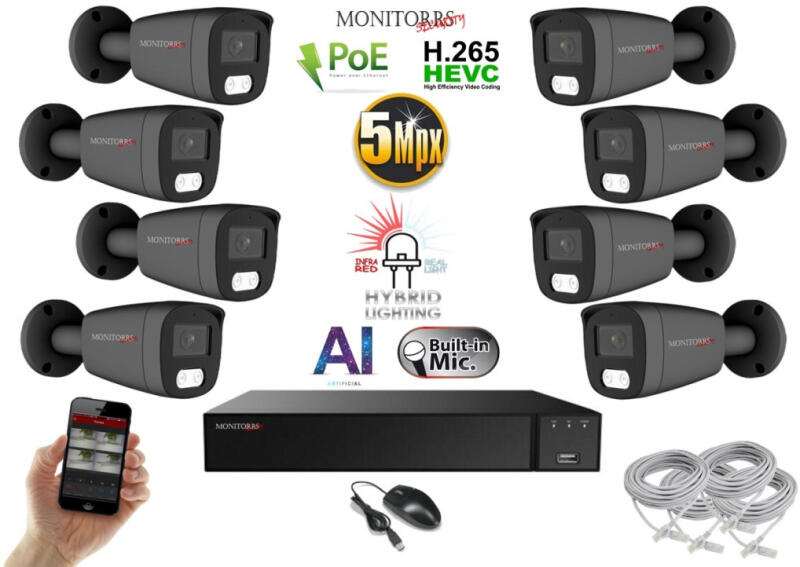 Monitorrs Security - AI Hybrid Light IP kamerarendszer 8 kamerával 5 Mpix GT - 6144k8