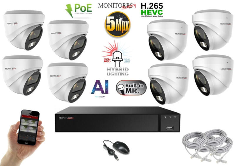 Monitorrs Security - AI Hybrid Light IP kamerarendszer 8 kamerával 5 Mpix WD - 6141k8