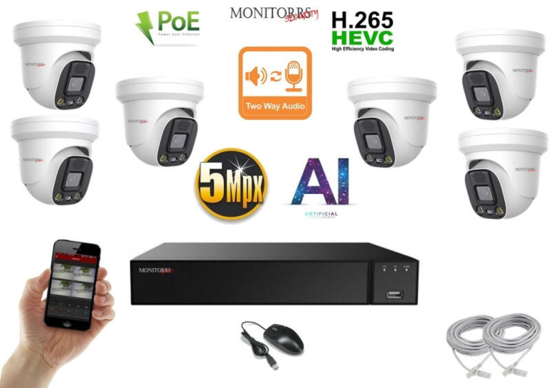 Monitorrs Security - AI IP Aktív dóm kamerarendszer 6 kamerával 5 mpix - 6077K6