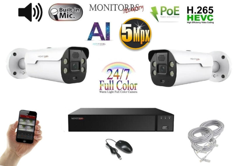 Monitorrs Security - AI IP Aktív kamerarendszer 2 kamerával 5 mpix WTube - 6079K2
