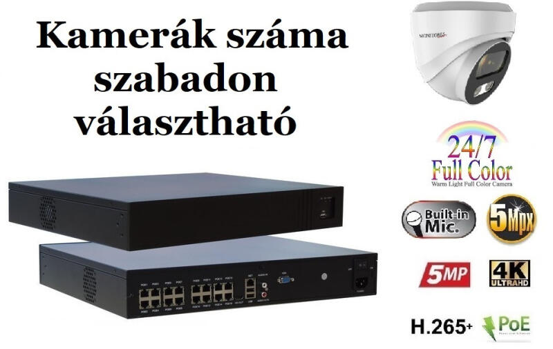Monitorrs Security - AI IP Full Color Dóm kamerarendszer 9-16 kamerával 5 Mpix Wd - 6022K9-16
