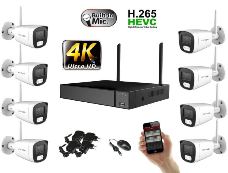 Monitorrs Security - Wifi IP 4K kamerarendszer 8 kamerával 8 Mpix. - 6125k8