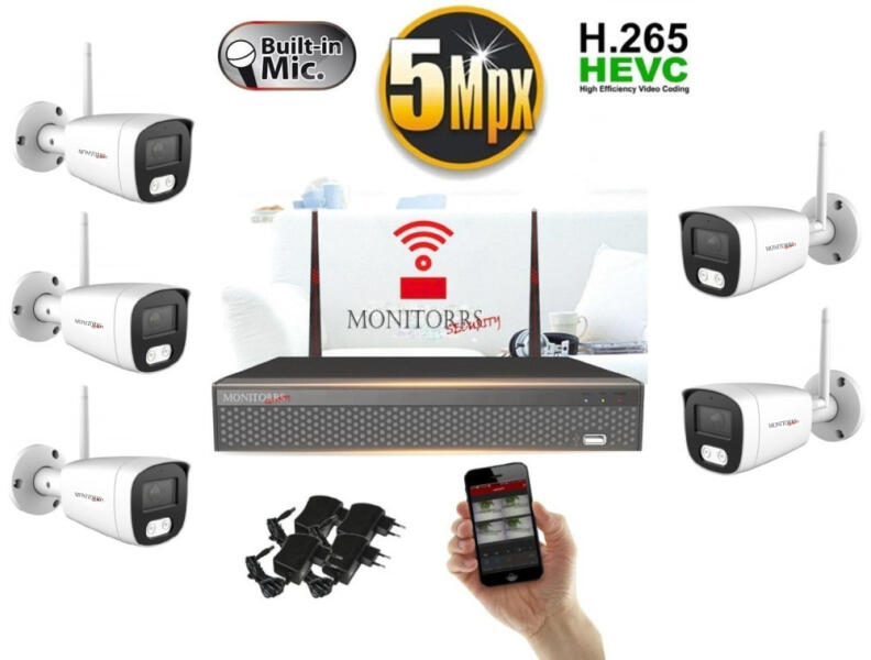 Monitorrs Security - Wifi IP kamerarendszer 5 kamerával 5 Mpix - 6121K5