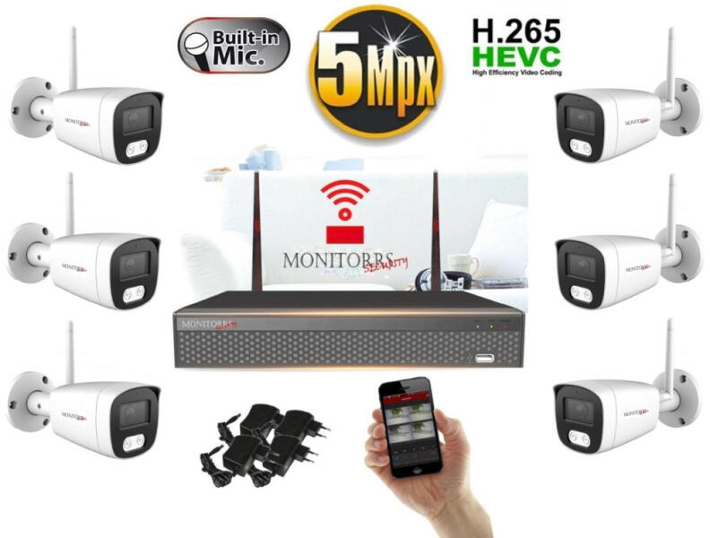 Monitorrs Security - Wifi IP kamerarendszer 6 kamerával 5 Mpix - 6121K6