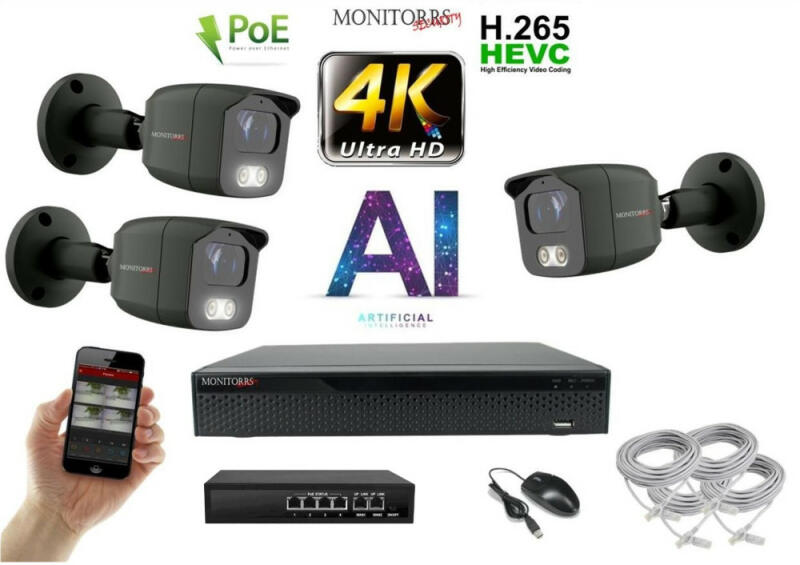 MS - 4K AI IP kamerarendszer 3 kamerával switchel 8 Mpix GT - 6379K3B