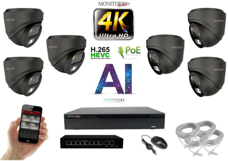 MS - 4K AI IP kamerarendszer 6 kamerával switchel 8 Mpix GD - 6377K6B