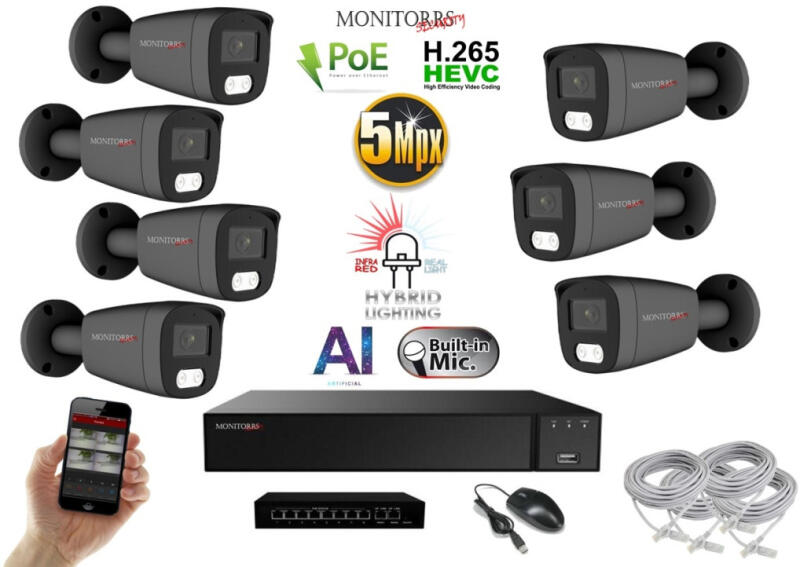 MS - AI Hybrid Light IP kamerarendszer 7 kamerával switchel 5 Mpix GT - 6144k7B