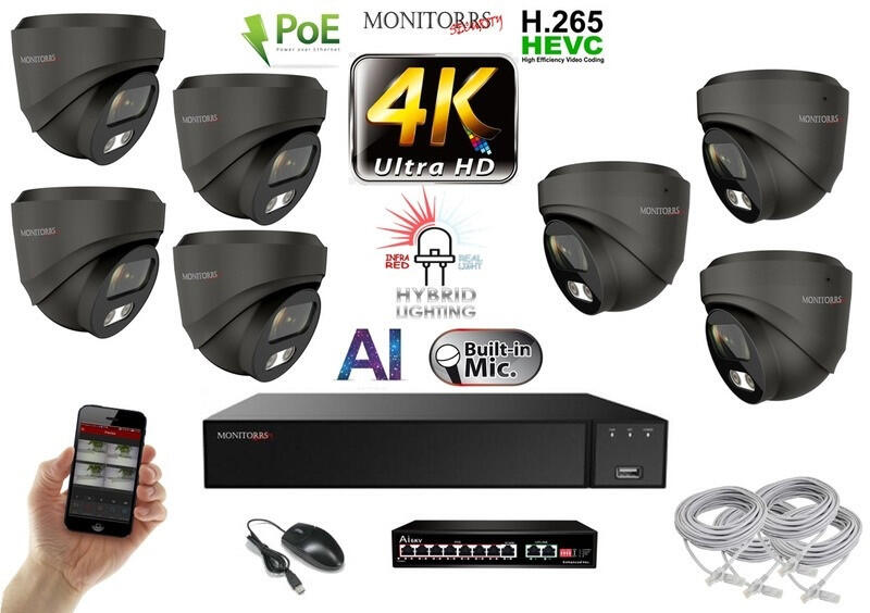 MS - AI Hybrid Light IP kamerarendszer 7 kamerával switchel 8 Mpix GD - 6482k7B
