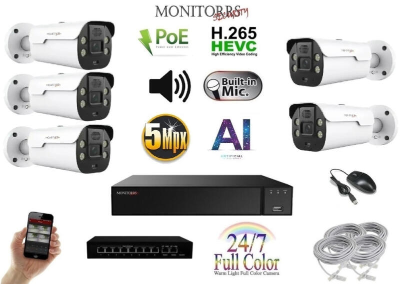 MS - AI IP Aktív kamerarendszer 5 kamerával switchel 5 mpix WTube - 6079K5B