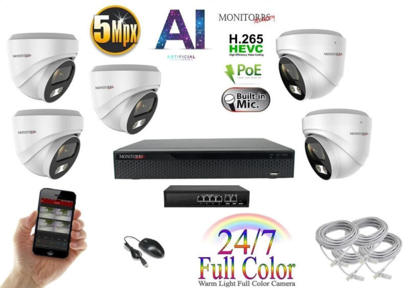 MS - AI IP Full Color Dóm kamerarendszer 5 kamerával switchel 5 Mpix Wd - 6022K5B