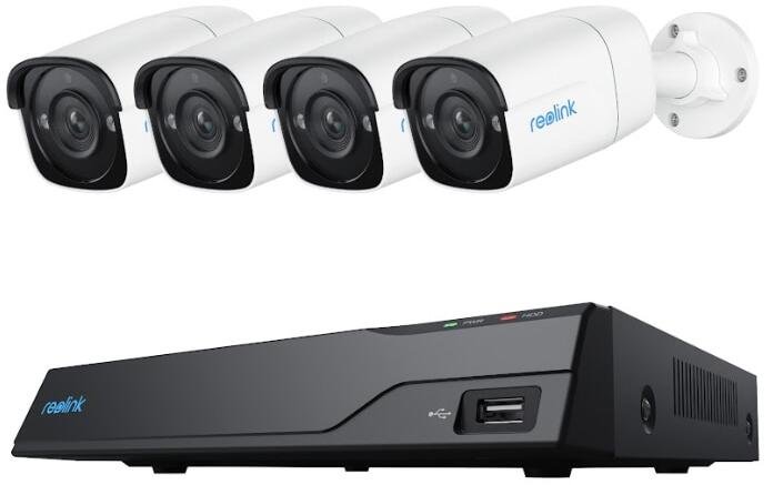 Reolink Megfigyelő kamerarendszer, Reolink, NVS8-5MB4, 5MP/4MP, PoE tápegység, 2TB HDD, 4 db B400 kamera szett (PS2KB02-8)